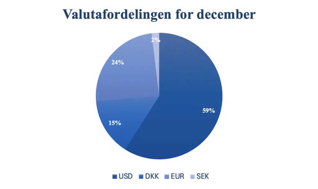 Valuta-eksponeringen består i hovedsagligt af aktier denomineret i fremmed valuta, samt en mindre del kontant indestående på valutakonti.